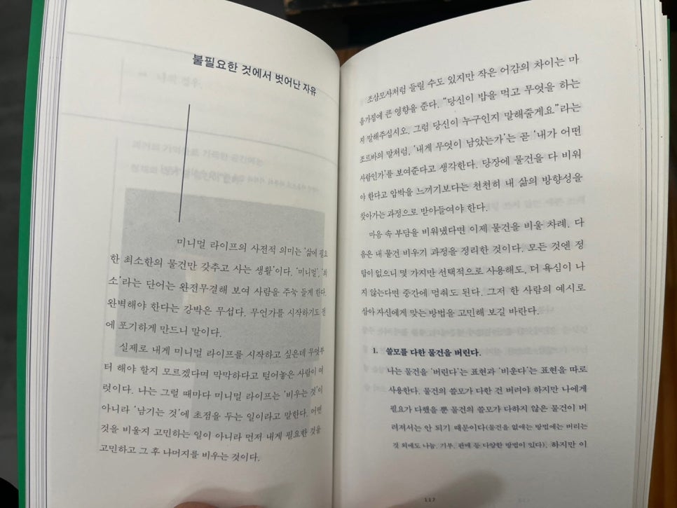이 책은 단순히 ‘물건을 덜어내는 법’을 말하지 않아요.